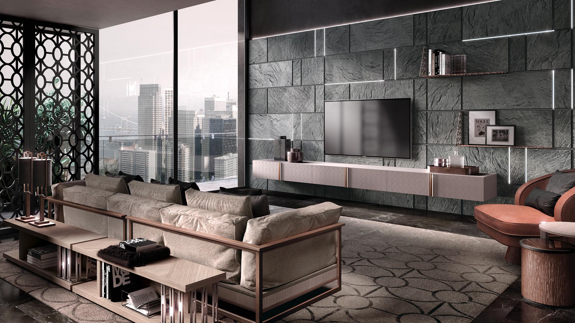 The living area is a space dedicated to welcoming people, a place for relaxation and conversation. Every single piece of furniture must be important and functional. Every line, every colour, every shape generates a harmonious composition that sets the mood.